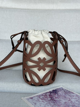 LOEWE Anagram cut-out pocket in classic calfskin and canvas 20x11x8cm